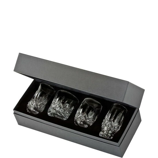 The Waterford Lismore Connoisseur Whiskey Series respects and reveres whiskeys of all varieties with a flight of hand crafted crystal tasting glasses, each one individually shaped and designed for a specific whiskey to be enjoyed straight, neat, or on the rocks. How you choose to drink your whiskey will determine the best Lismore Connoisseur glass for your particular pour. Opportunities abound for introducing whiskey aficionados to the joys of the Lismore Connoisseur Whiskey collection. A successful tasting begins with the Lismore Mixed Set of 4, one of each style glass. Including a straight sided tumbler, rounded tumbler, flared sipping tumbler, and a footed tasting tumbler.