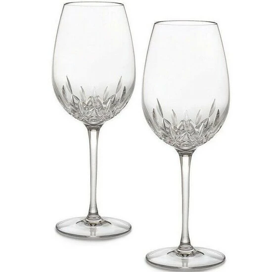 The revolutionary Lismore pattern with a fresh, more slender shape is exciting for all, brides to wine enthusiasts. With a lighter-walled and oversized bowl accompanied by a thinner stem, Lismore Essence is exquisite and statuesque. Two goblets of dishwasher-safe lead crystal, each with 19-oz. capacity.