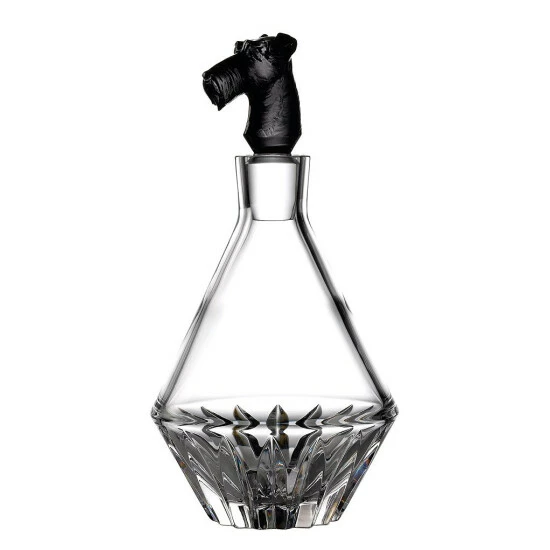 From Waterford, this decanter with a black Terrier stopper features: