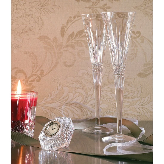 From Waterford, this pair of Lismore Diamond toasting flutes features: